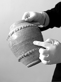 文物專家介紹,雖然文物經(jīng)濟(jì)價(jià)值并不是很高,但很有研究?jī)r(jià)值,其中一些在津京地區(qū)的文物市場(chǎng)上沒(méi)有見(jiàn)過(guò)。記者在現(xiàn)場(chǎng)了解到,年代屬新石器晚期時(shí)代———夏家店下層的就有四件,它們是四個(gè)陶鬲,專家介紹,它們能反映當(dāng)時(shí)的手工業(yè)發(fā)展情況;此外在南北朝的青釉堆紋罐中,有一件上刻有“褐彩‘倉(cāng)庫(kù)’銘”,研究人員可從這上面了解南北朝的生產(chǎn)及生活狀況,這批文物中有研究?jī)r(jià)值的還有很多。