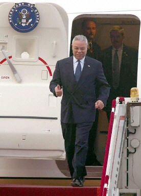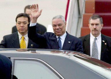 23日下午,美國(guó)國(guó)務(wù)卿鮑威爾乘坐的飛機(jī)抵達(dá)北京首都國(guó)際機(jī)場(chǎng),開(kāi)始對(duì)中國(guó)進(jìn)行訪問(wèn)。鮑威爾此行重點(diǎn)將是朝核、伊拉克問(wèn)題。
