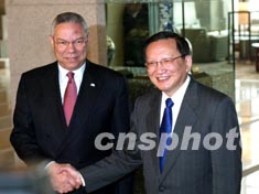 中新社北京二月二十四日電 (記者 齊彬)中國外交部長唐家璇今天在此間與美國國務(wù)卿鮑威爾舉行會談,雙方就兩國關(guān)系和當(dāng)前重大國際問題深入交換了意見,并認為會談是深入和建設(shè)性的。
