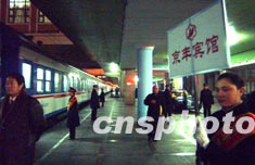 二十七日早六點零八分,為迎接首位抵達(dá)北京參加“兩會”的政協(xié)委員,賓館服務(wù)員早已在北京站等候多時。作者:盛佳鵬