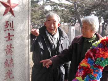 得知王清珍來沈后,黃繼光生前所在連的指導(dǎo)員鐘仁杰老人喜出望外,他和王清珍一起來到黃繼光的墓前,敬獻(xiàn)了花圈。兩位老人在一起回憶了許多過去的歲月,并參觀了紀(jì)念館。(葛紅俠)