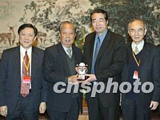 中國國務(wù)院僑辦副主任許又聲二十八日在北京會見以會長羅少榮(左二)為首的澳門歸僑總會訪問團。作者:滿會喬