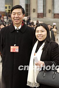 三月二日下午,全國政協(xié)十屆一次會議預(yù)備會議結(jié)束后,十屆全國政協(xié)最年輕的委員鄧亞萍與委員吳建民大使一起走出大會堂。作者:廖文靜