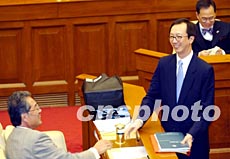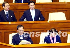 香港政務(wù)司、律政司等列席財政預(yù)算案.香港政務(wù)司長曾蔭權(quán)、律政司長梁愛詩等政府高官,3月5日列席立法會聽取財政司司長梁錦松提交2003至2004年度財政預(yù)算案。洪少葵 攝
