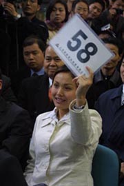 引人注目的是,“新湖”方面提前半個(gè)多小時(shí)就來(lái)到現(xiàn)場(chǎng)參拍,并選擇了“五十八”作為自己的拍賣號(hào),其姿態(tài)顯然是志在必得。在拍賣前,新湖老總陳堅(jiān)表示,全世界首條磁浮商業(yè)交通線是一個(gè)非常有影響力的項(xiàng)目,他們看重的就是拍賣的宣傳效應(yīng)。