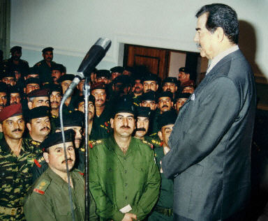 3月5日,伊拉克總統(tǒng)薩達(dá)姆在巴格達(dá)會見共和國衛(wèi)隊官員。