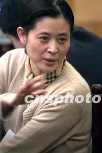 全國(guó)政協(xié)委員、電視主持人倪萍在七日的分組討論會(huì)上呼吁關(guān)注農(nóng)村普教問(wèn)題,對(duì)貧困山區(qū)發(fā)放“教育券”來(lái)保障教育資金的?顚S。作者:廖文靜