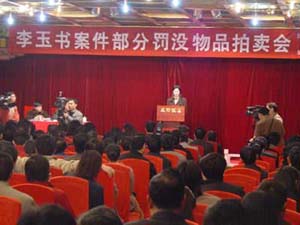 據(jù)悉,此次拍賣(mài)活動(dòng)是四川省繼拍賣(mài)原四川省交通廳副廳長(zhǎng)鄭道訪贓物后第二次拍賣(mài)貪官贓物。由成都市財(cái)政局,成都市人民檢察院主辦,由成都市東方拍賣(mài)公司拍賣(mài),估價(jià)在三百萬(wàn)左右,就金額而言,約占其非法所得的三分之一。這批贓物于六日起在成都飯店蜀樂(lè)宮向市民公開(kāi)展示,除李玉書(shū)為其情人購(gòu)置的兩套高檔住房、一套臨街商鋪和一輛白色富康轎車外,還有兩只瑞士原裝的勞力士手表、手提式電腦、派克鋼筆、空調(diào)、紅木沙發(fā)等物品。