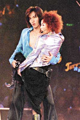 鄭秀文在其表演環(huán)節(jié)中,先獨(dú)唱一首,再介紹一身殺手打扮的Jerry出來(lái)為她伴舞。隨即二人還合唱《月亮代表我的心》,手拖手外,還邊唱邊舞,當(dāng)中不乏貼身舞姿,Jerry更一手抱著Sammi的大腿。