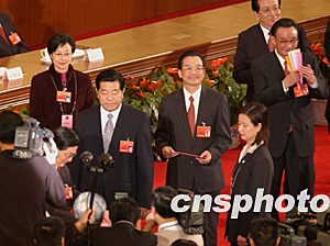 握手、鞠躬、揮手致意。肩負(fù)著歷史重任的中國新領(lǐng)導(dǎo)人以不同的方式表達(dá)著對人民代表的衷心感謝。