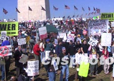 上萬美國人十五日在華盛頓紀念碑下集會,反對美國對伊動武。作者:中新社