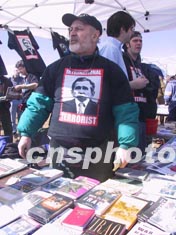 來自紐約“革命書店”的成員十五日在華盛頓紀念碑下向集會反戰(zhàn)的示威者兜售英文版的“毛主席語錄”小冊子。作者:中新社
