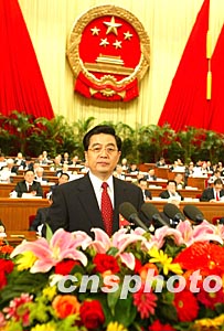 十屆全國(guó)人大一次會(huì)議十八日在北京人民大會(huì)堂閉幕,國(guó)家主席胡錦濤發(fā)表講話(huà)。作者:毛建軍
