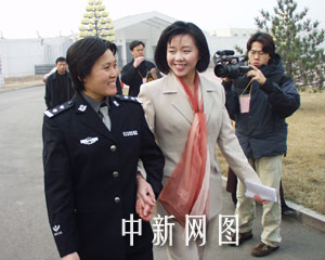 上午十時(shí)左右,身著米色套裙、白色皮鞋的滕春燕從位于北京大興的一所監(jiān)獄中走出來的時(shí)侯,與緊隨其后的兩位女警員相擁告別。面對(duì)早已等候在大門外的十多位中外記者,滕春燕興奮地說:“我現(xiàn)在的心情非常好。”為接女兒出獄,滕春燕的父親滕玉本專程自外地來到北京。