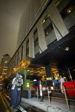 據(jù)香港媒體報(bào)道,香港著名影視歌星張國榮于4月1日晚6點(diǎn)40分左右從位于香港島中環(huán)的文華酒店(Mandarin Hotel)24層跳樓自亡。一個攝影師在Mandarin酒店外拍攝跳樓自亡現(xiàn)場。