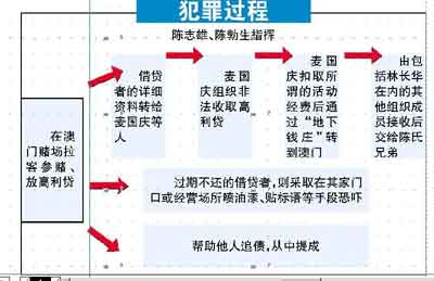 據(jù)起訴書指控,同案人陳氏兄弟——陳志雄、陳勃生(均另案處理)糾集了同案人曾繼軍(已被執(zhí)行死刑)、被告人麥國慶、林長華等人到澳門賭場從事非法活動,主要負責(zé)“疊碼”、介紹他人參賭、借高利貸。