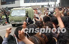 大殮儀式結(jié)束后,以全白花朵裝飾的靈車載著張國榮的靈柩駛離殯儀館,往哥連臣角火葬場火化。聚集在殯儀館門外的歌影迷揮手與偶像道別,讓他的倩影、歌聲永留心里。