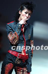 中國“威鵬”服裝春天在北京展示新款牛仔裝,狂放不羈的設(shè)計風格凸顯現(xiàn)代人的另類時尚觀念。作者:盛佳鵬