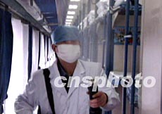 為嚴防非典型肺炎通過交通工具傳播,中國鐵路、交通部門要求客運站和車船必須堅持每天徹底打掃衛(wèi)生和消毒;全封閉空調客車在運行過程中,空調系統(tǒng)要處于強制通風狀態(tài)。中新社圖