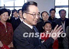 中新網(wǎng)4月18日電 今天下午,國務(wù)院總理溫家寶與中共中央政治局委員、國務(wù)院副總理吳儀,國務(wù)委員陳至立一起,先后到北京市六一幼兒園、北京市101中學(xué)、北京大學(xué)附屬小學(xué)和北京航空航天大學(xué),察看學(xué)校的教室、宿舍、閱覽室,與教師學(xué)生親切交談,詳細(xì)了解疫病防治工作。