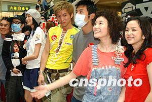 香港歌手余文樂(lè)出席“一杯涼水送暖大行動(dòng)”。作者:錢(qián)興強(qiáng)