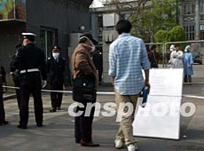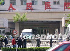 北京人民醫(yī)院二十四日上午作為首批受非典性肺炎污染的醫(yī)院,成為首批被隔離的區(qū)域。作者:滿會喬