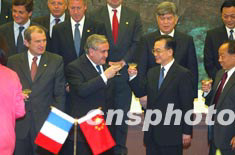 中國(guó)國(guó)務(wù)院總理溫家寶與法國(guó)總理拉法蘭四月二十五日在北京人民大會(huì)堂舉行會(huì)談,并出席雙方簽署關(guān)于中國(guó)購(gòu)買(mǎi)三十架空中客車飛機(jī)的總協(xié)議簽字儀式。作者:毛建軍