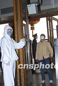 二十六日十七點,首都機(jī)場停機(jī)坪入口處,北京市交通委的工作人員正在等待一批從深圳運來的門式熱敏儀。當(dāng)?shù)谝慌吲_熱敏儀終于運到時,立刻就被調(diào)走七臺,余下的十臺運到趙公口、六里橋、東直門、八王墳等十個長途客運站,連夜安裝。其他長途客運站也將盡快配置。