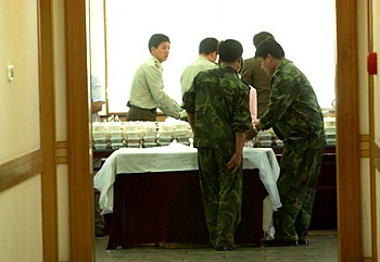 圖:為白衣戰(zhàn)士們準(zhǔn)備分餐