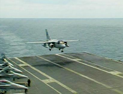 不過,負責(zé)總統(tǒng)安全保衛(wèi)工作的人員堅決反對讓布什一個人“上天”,最終,雙方達成妥協(xié)。布什先乘坐“空軍一號”專機抵達圣迭哥,然后換乘一架定員四人的小型飛機:S-3B“海軍一號”前往“林肯”號上“勞軍”。在飛行途中,布什一直坐在“副駕駛”位置上。除飛行員外,機上還有一名保鏢和海軍官員。當(dāng)年,這位總統(tǒng)曾經(jīng)駕駛過F-102型截擊機。此前,登上航空母艦視察的美國總統(tǒng)都乘坐直升飛機降落在甲板上,不過,這次“林肯”號距離海岸太遠,超過直升機行程,以致布什能“親自享受副駕駛的感覺”。