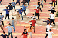 時至今日,交大校園已經(jīng)恢復(fù)了平靜,但這種平靜不似以往長假學生離校后的爽快。一位交大同學對記者說,原來校園里到處都是人,現(xiàn)在該走的都走了,校園反而是最安全的地方。操場上,一些沒有離校的大學生做著各種體育鍛煉。