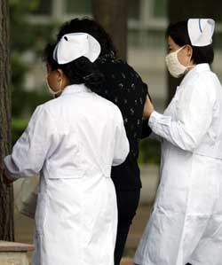 由于改建,宣武醫(yī)院已經(jīng)臨時(shí)招募到了200名護(hù)工!艾F(xiàn)在醫(yī)院的改建工程已經(jīng)進(jìn)入收尾,我們最早今晚就要接收首批非典病人。護(hù)工的問(wèn)題早就想到了,也正因?yàn)樵缬锌紤],所以現(xiàn)在心里稍微有點(diǎn)底!毙溽t(yī)院黨辦褚主任告訴記者,“200多名護(hù)工已經(jīng)到了,目前醫(yī)院正在組織醫(yī)護(hù)力量對(duì)他們進(jìn)行培訓(xùn)!