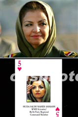 中新社紐約五月五日電(記者 陳建)伊拉克“炭疽夫人”胡達(dá)·阿馬什博士,端莊美麗得有些出人意料。美方官員說,五月四日,這位女科學(xué)家向美軍投降了。她是美軍發(fā)布的五十五名通緝要犯撲克牌中唯一的女人。在紅心五撲克牌上,五十歲的“炭疽夫人”頭戴豆綠色頭巾,威嚴(yán)地敬著軍禮。