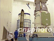 中國(guó)航天科技集團(tuán)公司五月初透露,神舟五號(hào)載人飛船和發(fā)射飛船的長(zhǎng)征二號(hào)F火箭的研制工作進(jìn)展順利,將于年內(nèi)如期升空。中新社圖