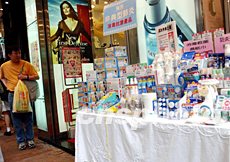 香港“非典”疫情穩(wěn)中放緩,市民不敢松懈,售賣預(yù)防病毒傳染的用品繼續(xù)受落。洪少葵 攝