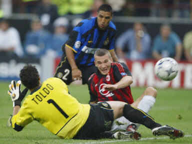 為AC米蘭掃清前進(jìn)路上障礙的是他們的頭號射手舍甫琴科。這位有著“烏克蘭核彈頭”之稱的前鋒在上半場的傷停補(bǔ)時階段打入了雙方兩場半決賽中最重要的一粒入球,——前國際米蘭球員西多夫妙傳舍甫琴科,舍甫琴科在擺脫了國際米蘭隊幾名后衛(wèi)的防守后,在對方門前近距離處用右腳將球送入意大利國門托爾多把守的大門。