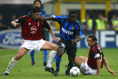 一球在手的AC米蘭占據(jù)了場上的主動,而他們的同城兄弟則必須在后面的45分鐘里連扳兩球才能擊敗對手出線。正如法新社所言,此后的比賽近乎瘋狂。國際米蘭的替補(bǔ)球員馬丁斯在比賽還剩下7分鐘的時候利用對方老后衛(wèi)科斯塔庫塔的失誤,為國際米蘭打入一球,使他們重新看到一線曙光。但是此后AC米蘭門將阿比亞蒂卻頑強(qiáng)的頂住了國際米蘭的狂轟濫炸,把1-1的結(jié)果保持到最后。
