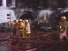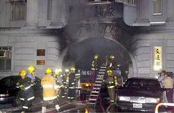 據(jù)了解,“交通部”的正門口15日晚間7時28分燃起熊熊大火,一輛掛在桃園龜山友立公司的小貨車,從桃源街又轉(zhuǎn)后即直沖“交通部”門口,駐守警衛(wèi)緊急聯(lián)絡消防人員,19輛消防車緊急趕往現(xiàn)場,火勢約在20分鐘內(nèi)撲滅,辦公室內(nèi)加班員工及數(shù)十名媒體記者所幸安然無恙,但“交通部”正門口已被兇猛的火勢燒得一片焦黑,火焰甚至高達4樓。