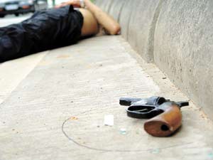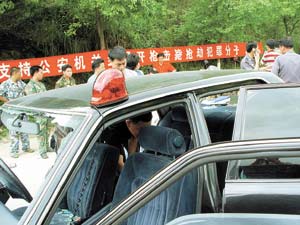 中新網(wǎng)5月18日電 昨日凌晨5時,駕駛著一輛黑色皇冠轎車,四名亡命歹徒攜帶兩把手槍和三把馬刀,從深圳布吉鎮(zhèn)出發(fā),經(jīng)平湖至光明農(nóng)場一路瘋狂行搶。昨日凌晨7時30分,在寶安區(qū)觀光公路育新學(xué)校路段,正在實(shí)施搶劫的歹徒,遭遇寶安便衣民警伏擊,經(jīng)過約5公里的飛車追逐和激烈的槍戰(zhàn)后,一名歹徒被當(dāng)場擊斃,3名歹徒被警方抓獲———