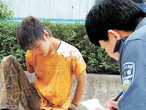 吊在車門上意圖逃竄的歹徒并沒有能支持太久,他從車上摔落到了馬路上。狡猾的歹徒躺在地上,一動不動,當(dāng)民警停下車來向他逼近之時,他從背后掏出一把馬刀便向民警砍去,但沒有得逞,就被民警當(dāng)場抓獲。