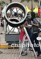十八日,香港文化中心廣場(chǎng)舉行博物館開放日,一座“杜素式天文望遠(yuǎn)鏡”吸引參觀者。據(jù)悉,該望遠(yuǎn)鏡能看見暗至16等的恒星、小行星等。譚達(dá)明 攝
