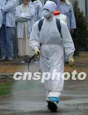 中國(guó)五月中旬研制成功有效殺滅75%沙斯病毒的消毒劑“宏達(dá)海因”,立即率先用于北京小湯山解放軍專治“非典”病患者的野戰(zhàn)醫(yī)院。中新社記者:賈國(guó)榮