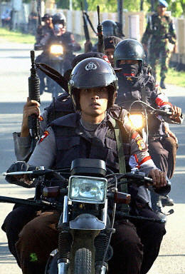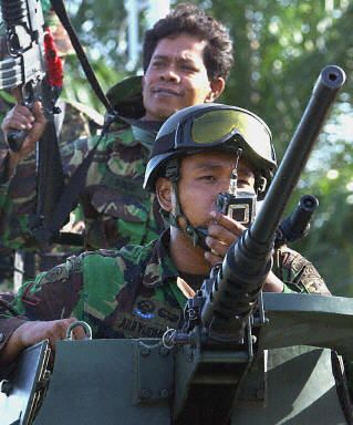 印度尼西亞政府18日宣布將對亞齊叛軍實行軍事打擊,并在該國亞齊省實施戒嚴。圖為印尼政府軍在亞齊省內(nèi)加強安全警戒。