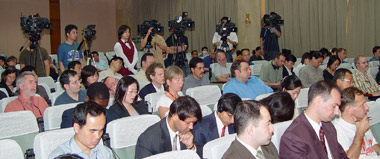 劉古昌副部長介紹說,這次峰會按照輪流次序本來應(yīng)該是在哈薩克斯坦舉行。俄方為了便于各成員國領(lǐng)導(dǎo)人出席圣彼得堡建市三百周年慶典而與哈方協(xié)商,將會議移到莫斯科舉行。
