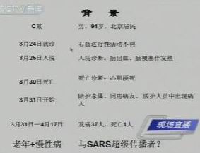專家根據(jù)一個非典病人病例進行分析指出,根據(jù)病人背景資料顯示,該病人是一位超級非典傳播者,該病人發(fā)病初期由于年齡過高并伴有其他病癥,故其非典病癥被忽略。由此也說明老年人如感染非典更容易成為病毒傳播者。