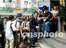 為救治非典型肺炎病人而殉職的香港女醫(yī)生謝婉雯5月22日舉殯,特首董建華在醫(yī)院管理局主席梁智鴻陪同下到場悼念。洪少葵 攝