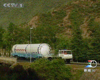 “北斗一號”導(dǎo)航定位衛(wèi)星運往發(fā)射架途中