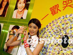 香港紅星陳慧琳五月二十五日在此間代表公益金接受“一人一歡笑”慈善大行動支票轉(zhuǎn)贈。圖為陳慧琳笑逐顏開,向眾歌迷傳遞歡笑。中新社傳真 潘索菲 攝