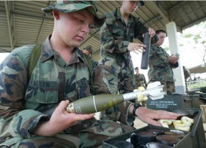 (三)向其盟國展示武器裝備,為美國軍火商推銷武器做廣告。如果說,戰(zhàn)場是美國軍火商最大的武器推銷場,那么,演習(xí)場就是美國軍火商的第二大武器推銷場。海灣戰(zhàn)爭讓美國軍火商掙足了鈔票,科索沃戰(zhàn)爭又讓美國軍火商們大撈了一把,戰(zhàn)爭已經(jīng)成為美國兜售武器的最佳時機,這似乎已成為美國屢試不爽的法寶。然而,在沒有戰(zhàn)爭的和平時期,演習(xí)場就成了美國最好的武器推銷場。近幾年,亞太一些國家為實現(xiàn)軍隊現(xiàn)代化投入了巨資,這樣一個難得的軍火出售機會,美國是絕不會放過的。通過“金色眼鏡蛇”演習(xí)美國將向其盟國展示其武器裝備的優(yōu)越性能,以引起這些國家的濃厚興趣,為美國軍火商在亞太軍火市場占有更大的份額打下基礎(chǔ)。(聞新芳)
