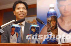 百事可樂公司29日在上海首度發(fā)布了一則由姚明與周杰倫合作拍攝的電視廣告片,這也是姚明簽約百事后的首個“動作”。可惜姚明參加國家籃球隊集訓(xùn),周杰倫在法國工作,兩名主角均未蒞臨發(fā)布會現(xiàn)場。圖為百事公司人士介紹這部將于六月在內(nèi)地多個電視臺同步推出的廣告片。作者:艾特